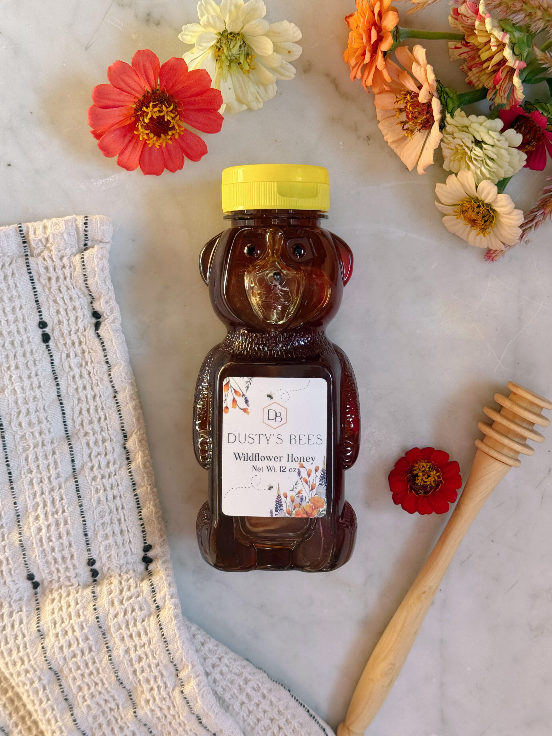 12 oz of pure raw wildflower honey conveniently bottle in a squeeze bottle with a flip top lid.  No more messy honey! Our wildflower honey is all natural and has not been processed or altered in any way.  Great for allergies and natural remedies.  You are buying honey directly from us the beekeeper!  Don’t be fooled by fake honey in your grocery store. Try real honey from real beekeepers!